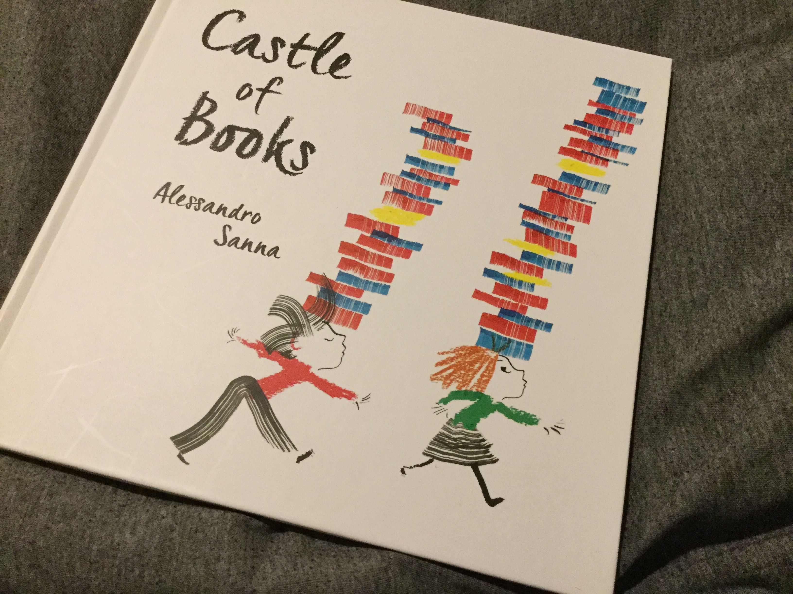 I have always loved books about books and this nearly wordless picture book is a stunning addition to my collection. With a strong use of primary colours, a pair of children argue the all important question, “Why do we need books?” Simple one word answers tell the exact reasons, succinctly. “To invent, build, lose ourselves”, as the books take the form of such an idea! A superb book to prompt children to answer the same question at the beginning of each school year. Beautiful and timeless fun and the never ending need to convince a non reader to become a reader! Love this one!