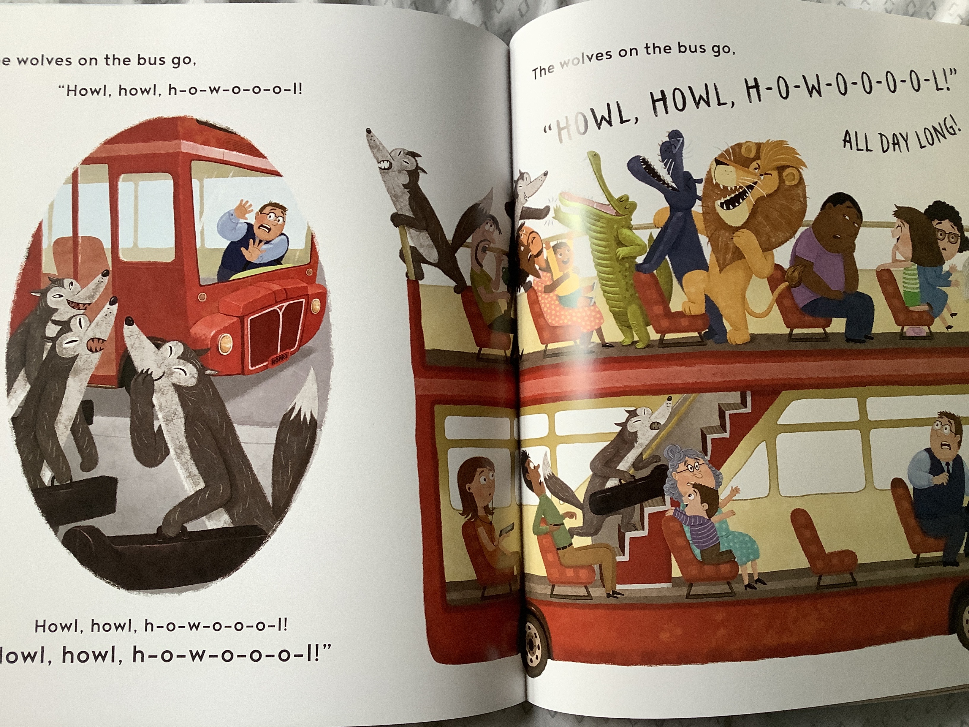 Be prepared while reading this to find your toes tapping and this song getting stuck in your head. Delightfully funny and brilliantly Illustrated, it is time to hop on the bus with a scary cast of characters, from lions to panthers to wolves….the people on the bus say, “Please don’t bite”! What will happen when more animals hop on board? For the reader, it is a musical chaotic scene and will certainly bring giggles to the story time. As a class read aloud, I think it would become a very musical event adding in each silly new verse to accompany the original well known song.