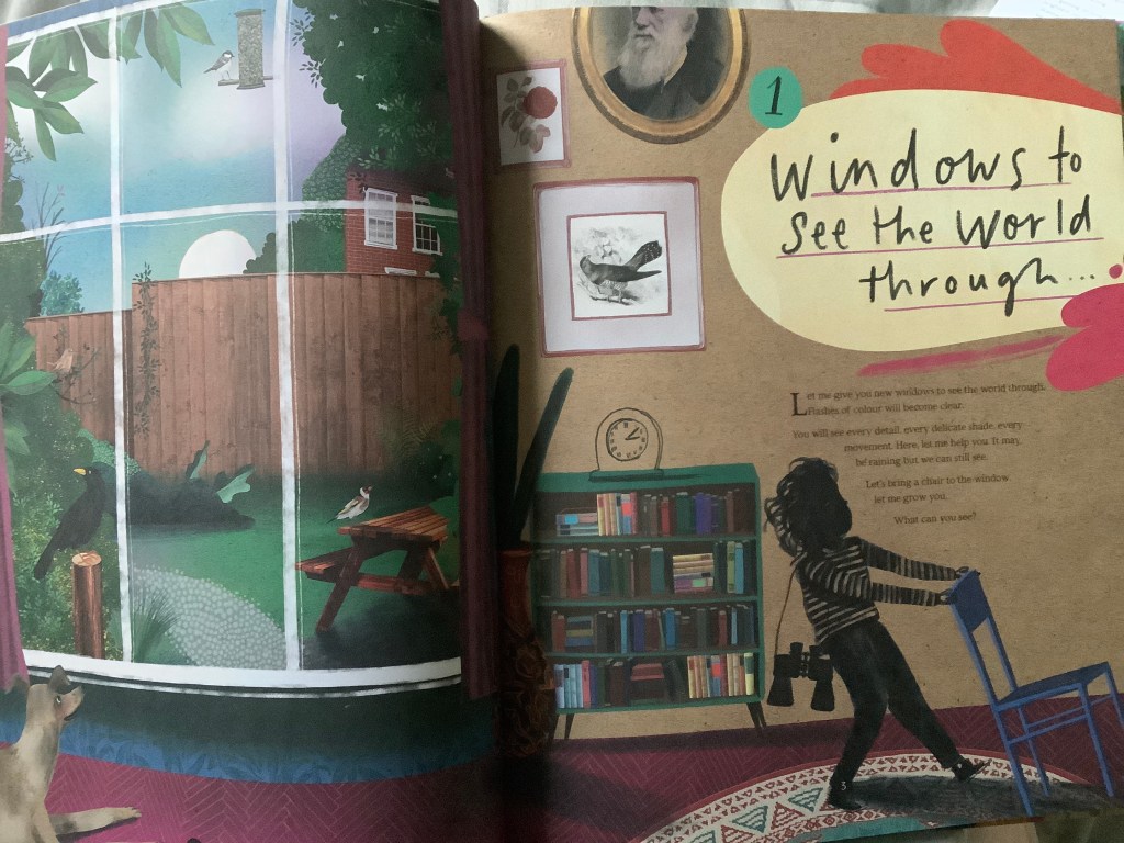 Starting with looking through our own windows to the back garden, we can learn about local birds and then learn from a stunning page of Collective Nouns!