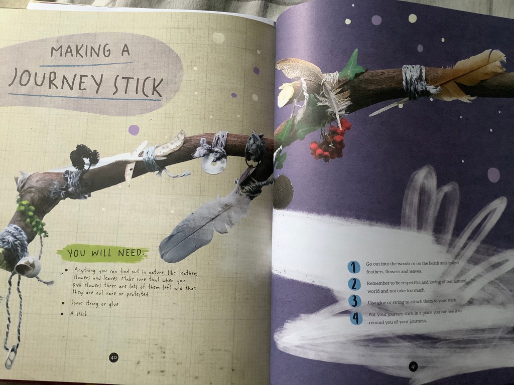 The reader will get taken on a journey of curiosity and discovery as they leave the back garden and start to wander further afield. One of the activities is to create a journey stick, and I can think of no better activity to chart your reading of the book.