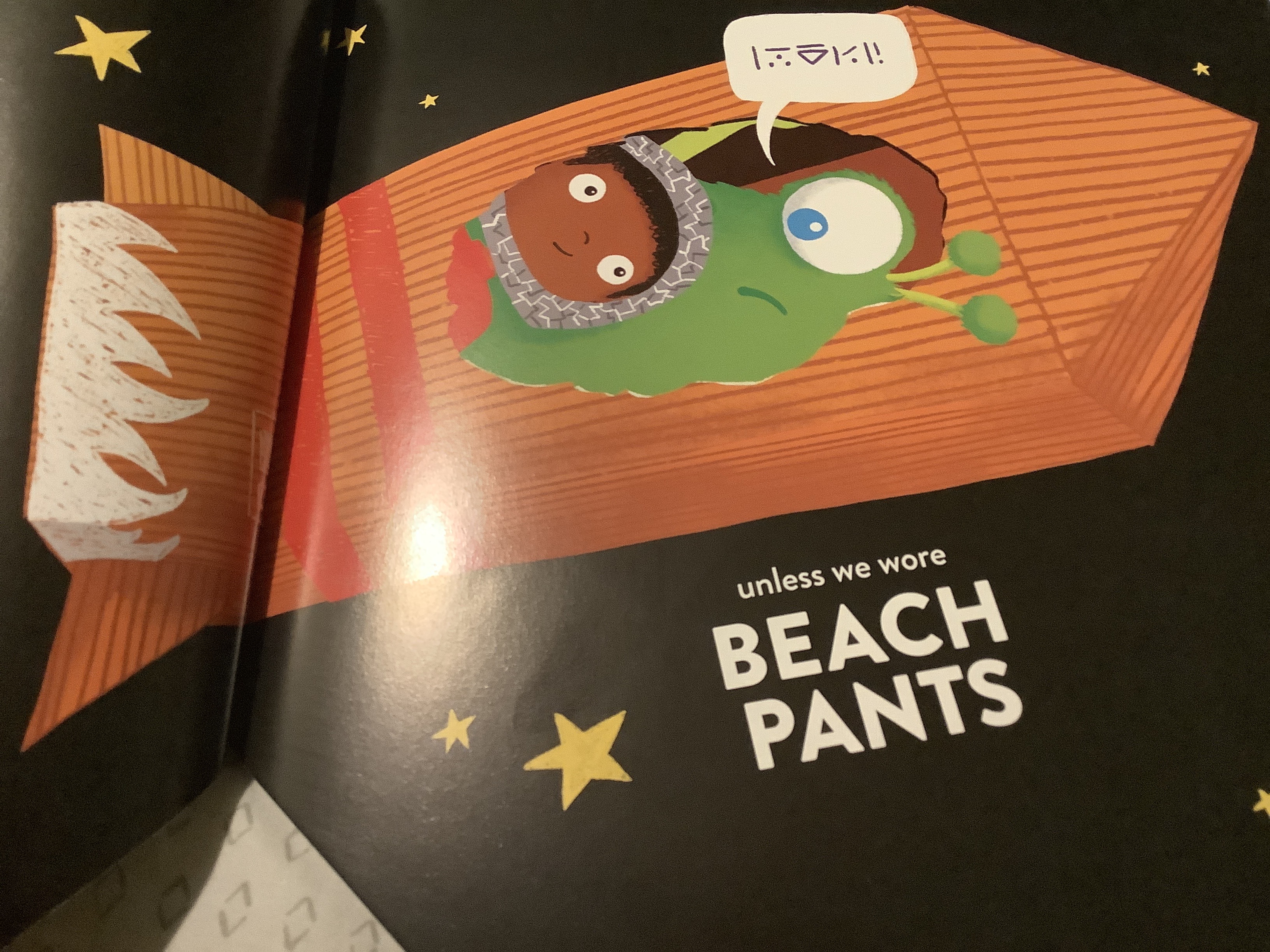 We have I Say OOH, You Say AAH and I Say BOO, You Say HOO at our house and they are amongst the top picture books my children still want to read and interact with. This latest from author/illustrator John Kane will have children acting out funny scenes with pants and chuckling along with the characters. Each of Kane’s books come with hilarious instructions that the reader must follow along with to get the full enjoyment from the story. This one involves various types of pants to help welcome an alien to Earth. From speedy pants to monkey pants and pizza pants, the imaginations of the reader will be delighted with each double page spread. Bold and brightly coloured pages ensure a fun atmosphere while reading. Entirely delightful and fun- a perfect interactive read aloud!