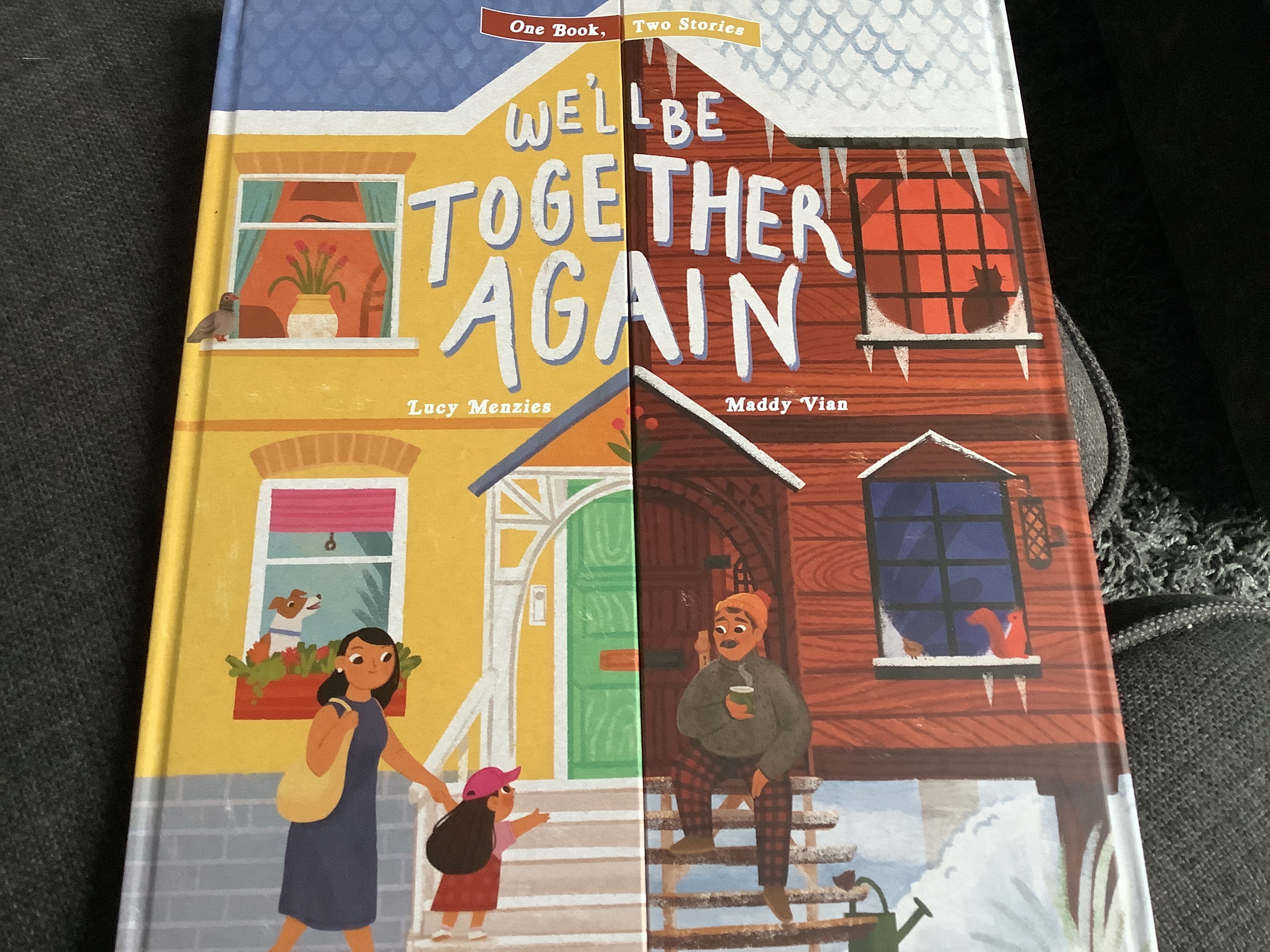 For two years, we have had similar conversations as Bella and her Grandpa Jack, saying things like, “Can’t wait to hug you and see you soon”. When restrictions eased and we could see family and friends, the appreciation of those times was and is still evident. Bella and her Grandpa tell their stories in this cleverly designed book with 3 ways to read it. You can read each story separately or together. They miss each other and video calls are just not the same but “We’ll be together soon.” , is always their parting comment. Brilliant illustrations show the distance and differences in Bella and Jack’s lives. An apt and relatable book for what our families have been through. We have yet to see my family in Canada and I know we will have as joyous a reunion as Bella and Grandpa Jack.