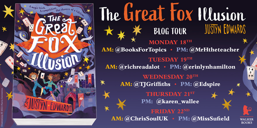 As part of the blog tour for The Great Fox Illusion, author Justyn Edwards shares his top 5 magic tricks! Have you ever seen or heard of these illusions or tricks before? Check out the accompanying videos for more about each one!
