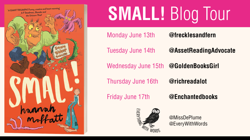 When I was writing Small! I wanted children to see that most things that go wrong in life aren’t their fault. But I didn’t want to write a heavy tome about divorce. Or changing schools. Or learning to accept who you are. All those ideas run through Small! They just do it against a backdrop of a Stinking Sinking Swamp, giants attempting can-can lessons and all the swamp fish and bogweed sandwiches you can eat.
