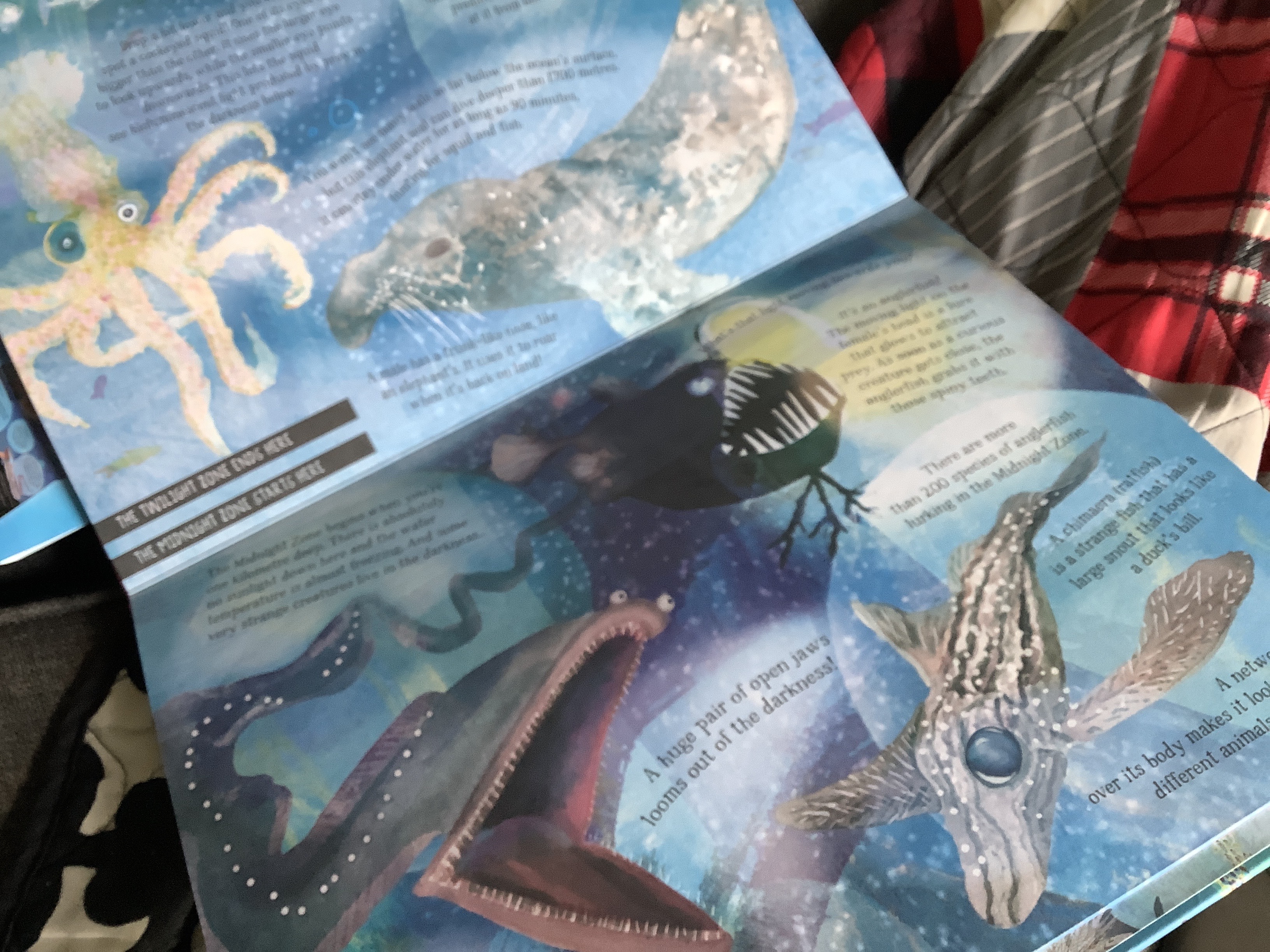 This is likely the longest pull out book I have ever encountered. Colourful, bright and informative, this book provides endless entertainment and reading for all ages. Starting with the sunlight zone and dipping toes into the waters on the shore and heading deep into the depths of Abyssal Zone and trenches. As you travel deeper, you will find yourself face to face with some incredible sea creatures and facts about oceans and all that can survive within them. It is a widely known fact that we have still so much to learn about our oceans and their creatures. This book will certainly help young readers see why. Double backed and full of unbelievable illustrations, this is just a delight. Open it up and see what you will discover!