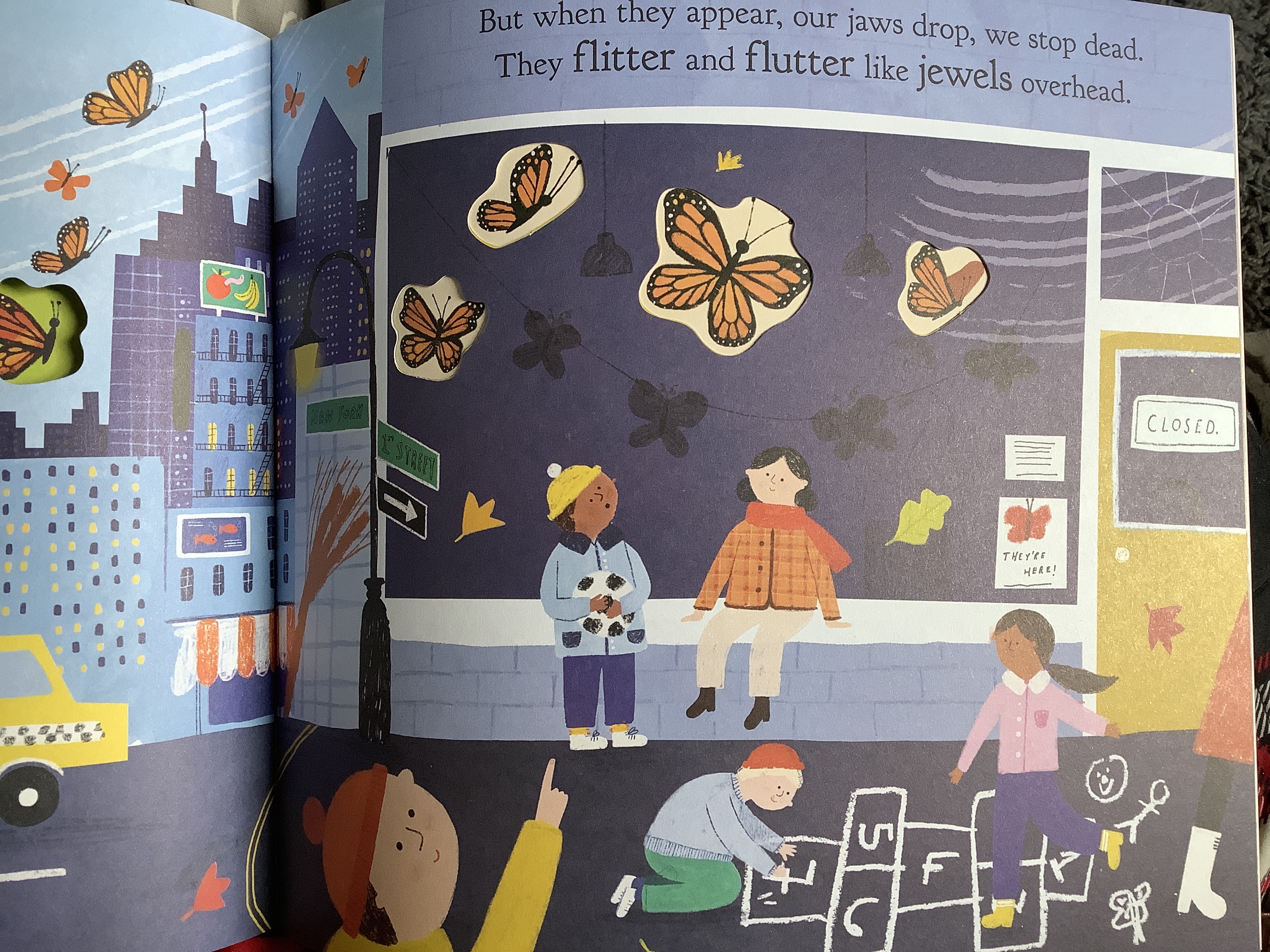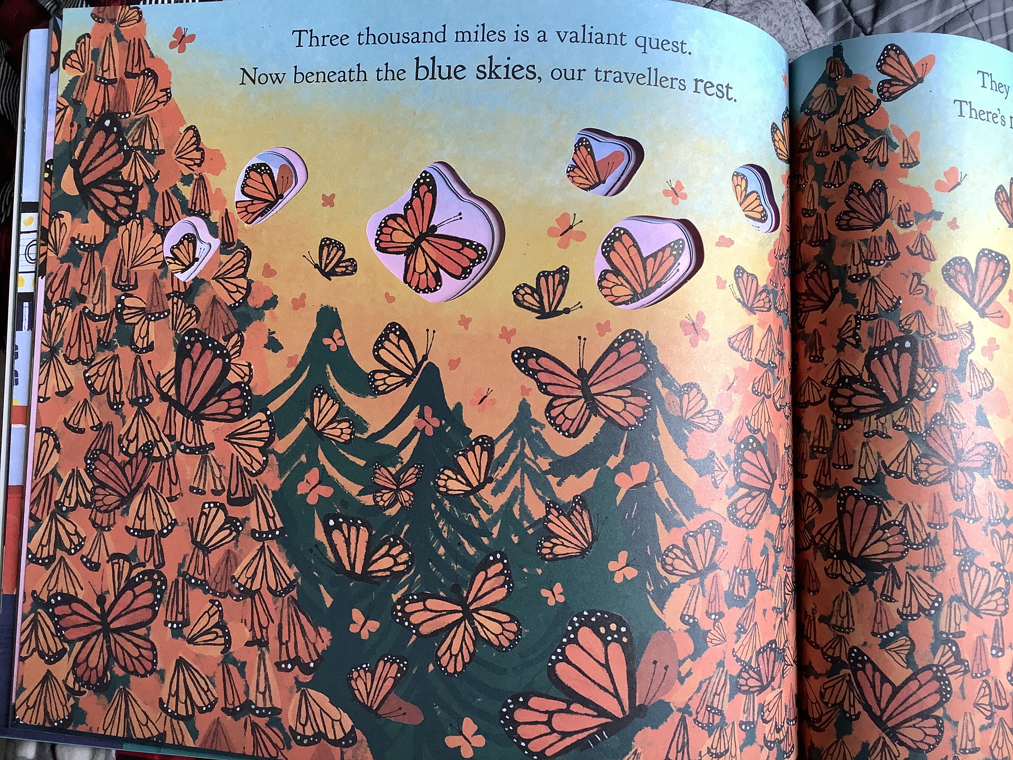 The migration of the monarch butterfly is beautifully and creatively brought to life in this delightful book. Told in wonderfully rhyming couplets and accompanied by peek through pages and colourful illustrations, this is a book to return to time and again. Using the earth’s magnetic fields, generations of monarch butterfly migrate for warmer weather. Their journey is a long one but they remind readers to look up and celebrate the wondrous journey these butterfly endure year after year. The joy of this book will be felt by readers of all ages as they look to the skies to see thousands of orange and black butterflies flying past.
