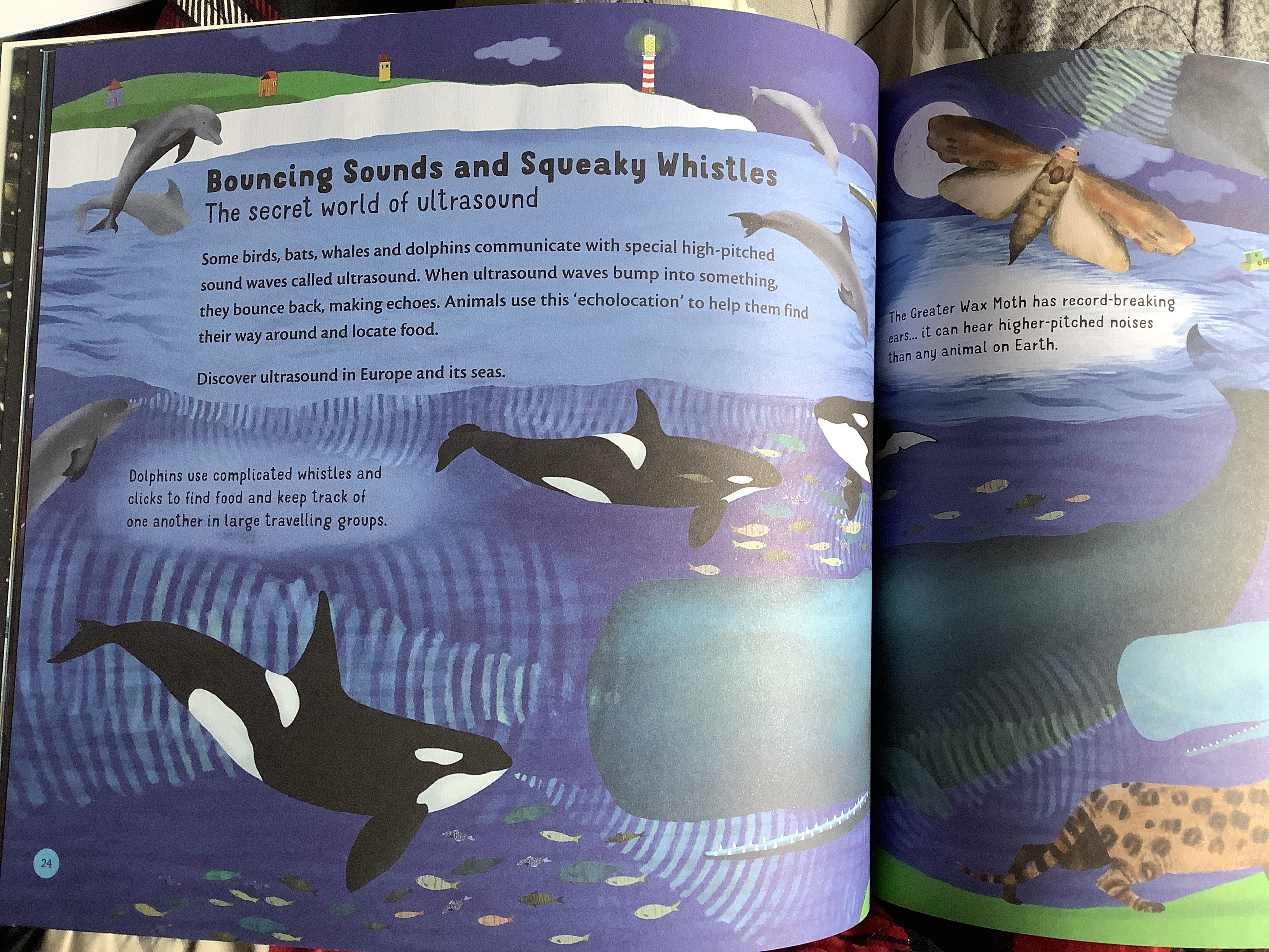 Microwaves, infrared, ultraviolet- these terms and more are compared between the uses we make of them to those that animals and the natural world use. Did you know that reindeer can see their food due to the lichen glowing in UV? Did you know that the duck-billed platypus has electric sensors along its bill that help it find food? This book is an absolute mine field of facts and fascinations. The glorious illustrations highlight the use of each sense in the natural world and make it simple for young readers to understand. Short bursts of text are separated from each other to allow readers the chance to scan the page and study the illustrations alongside their reading. A great book for learning about ways humans have adapted the natural world and learned from it to benefit the human race. Readers will love learning more about the survival of animals relying upon senses we don’t even have!