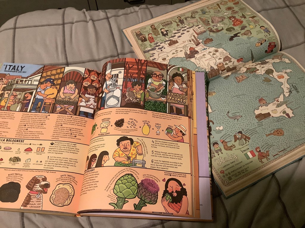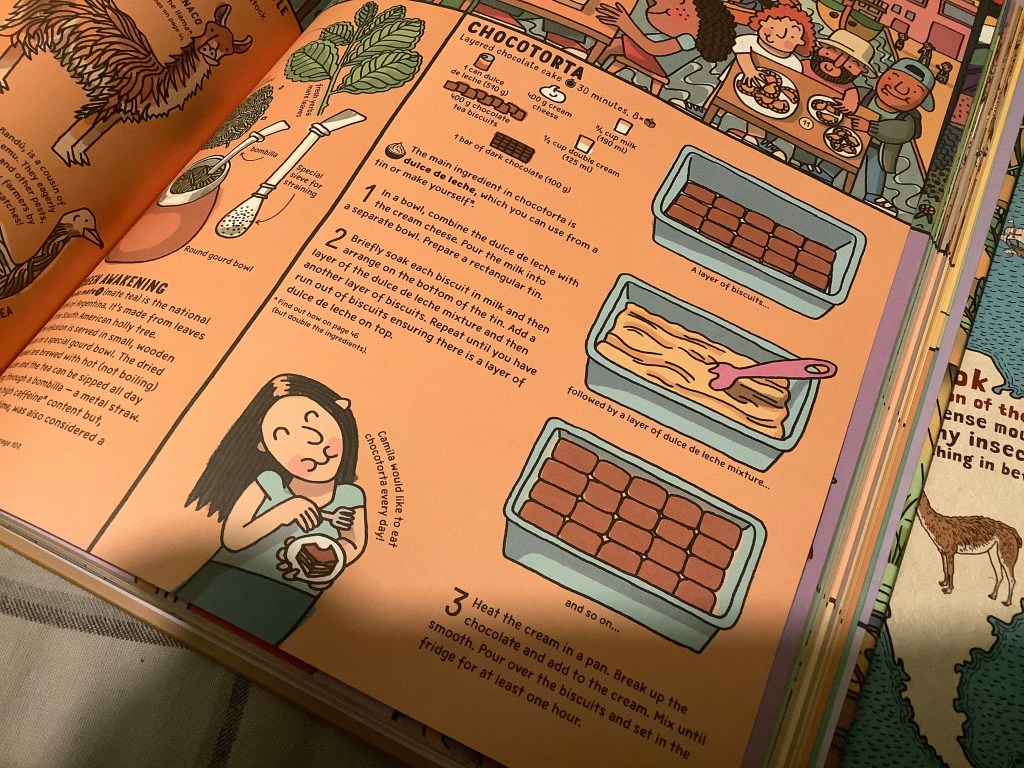 I think what sets this book apart from its competitors is the attention to detail and the illustrations. Each country is represented with their food and aspects of their culture, which appear to me to be very well researched. Gatherings of friends and family are shown in many of the places showing the importance of food to a sense of belonging and community.