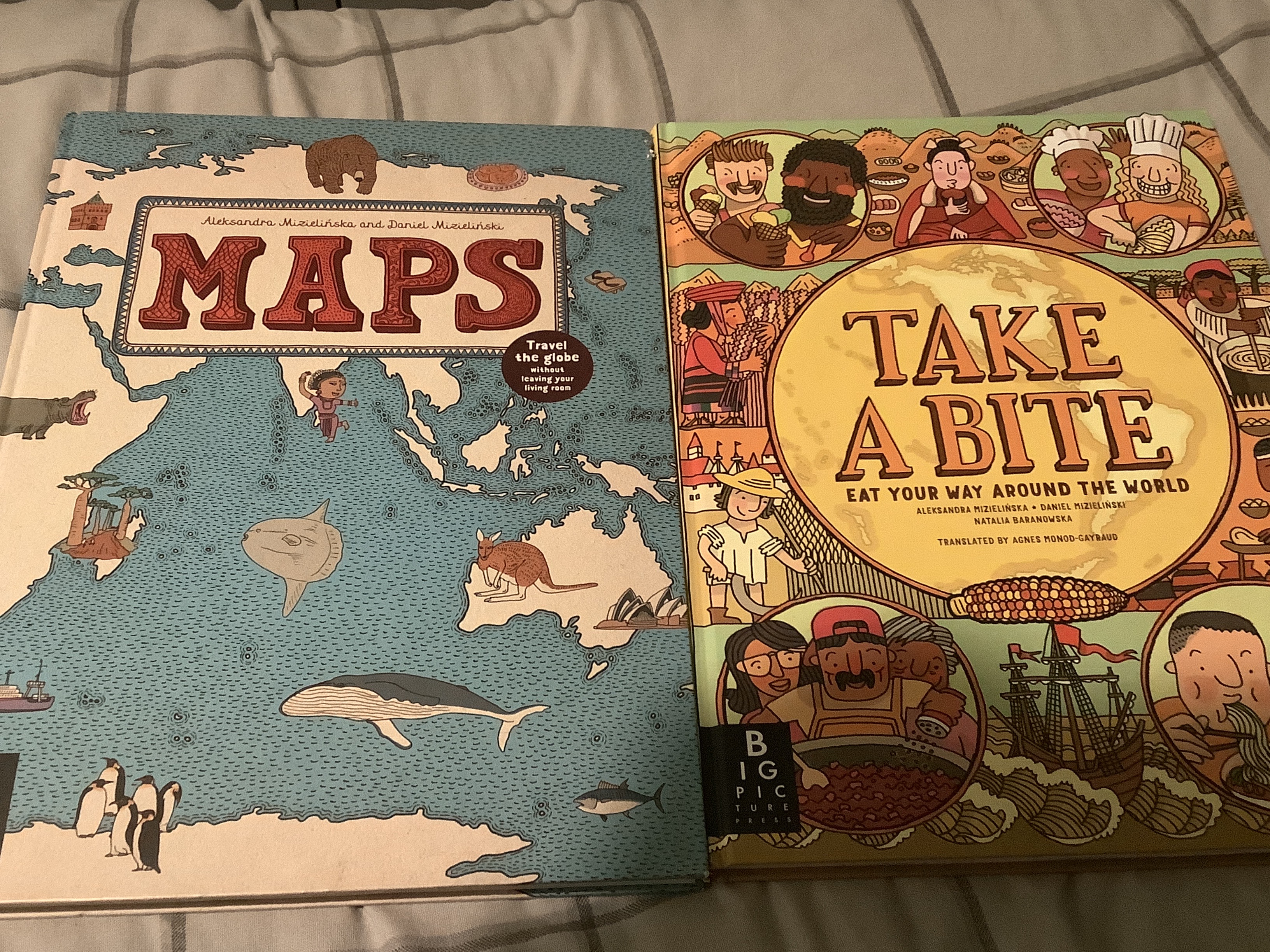Take a Bite is the perfect companion to Maps, the gorgeous atlas that is hugely popular in my home. When it first published, my son was young and loved exploring maps, atlases and delving into geography. Maps was bought for him and we spent ages investigating the world.