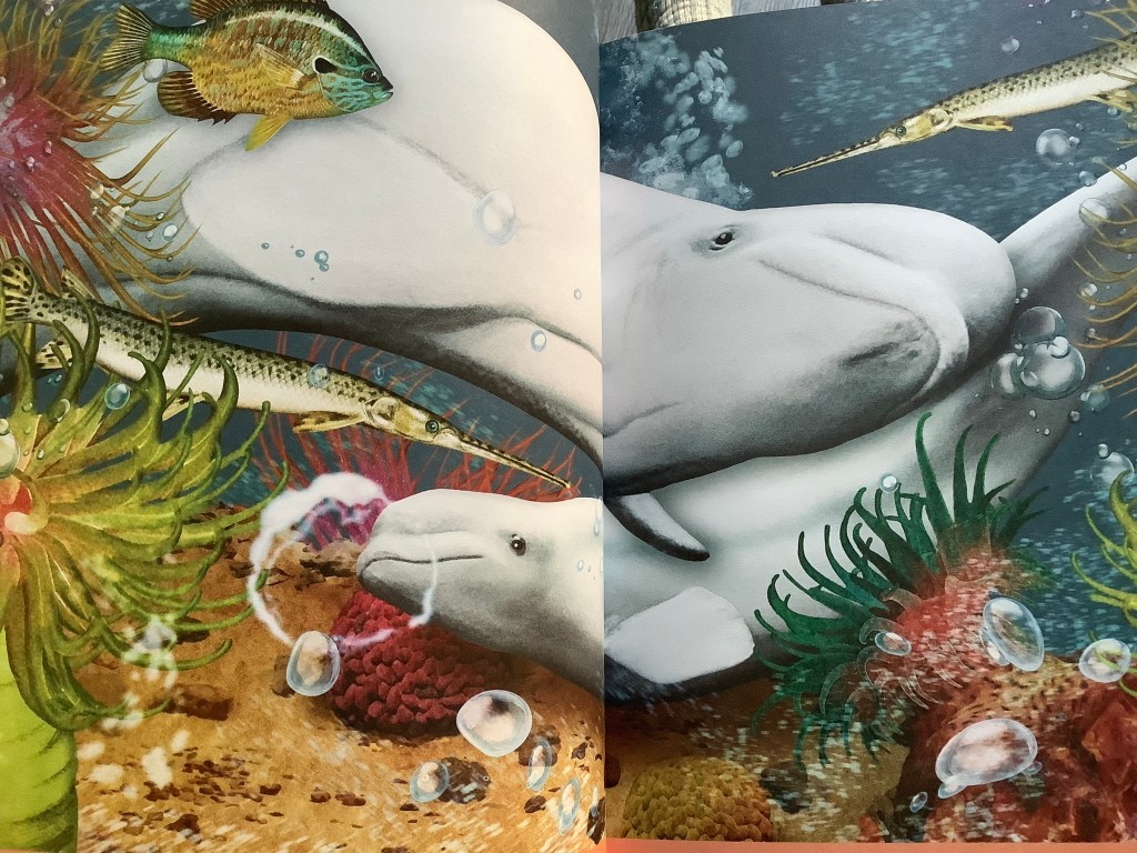 Within the pages of the extra large book, you travel from the mudflats in Northern Europe through to the coral reefs in Australia and on to slow and fast moving fresh water, in Russia and South America.