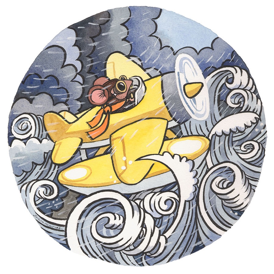 But the mice didn’t have individual personalities yet. It was only when Sarah asked Philip to come on board with her to make books, that they thought up the characters you can read about now. The characters really came about because they needed mice to pilot the various modes of transport that a Mousebase might command. Sarah had drawn a picture of a mouse piloting a seaplane: